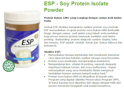 - ESP memberi tenaga berkekalan untuk ibu yang tahan selama berjam-jam lamanya. Selain itu ESP membantu ibu memperolehi kesan yang optimum untuk pengambilan vitamin-vitamin lain. Kulit juga menjadi lebih licin, gebu dan anjal.
